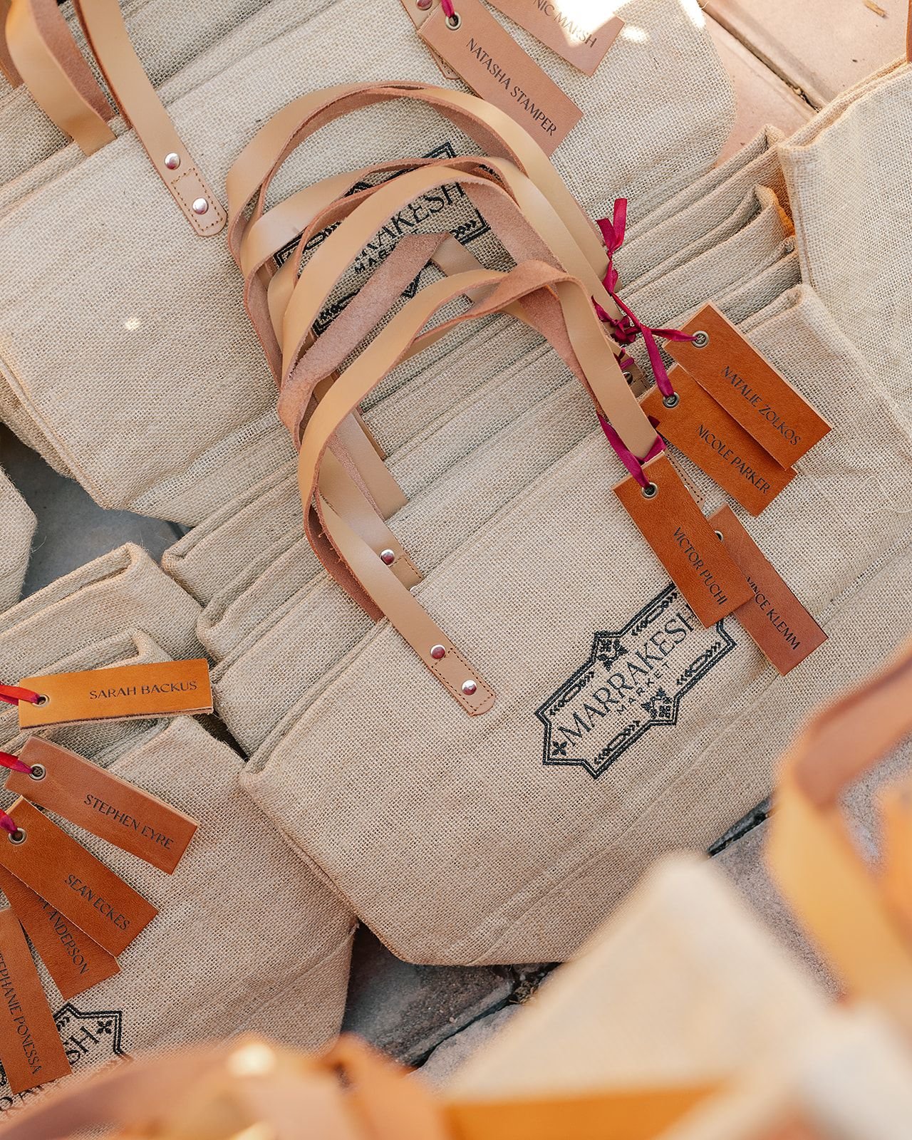 Cheery welcome baskets greet guests to kick off a colorful and unique wedding weekend. Photo: Jose Villa