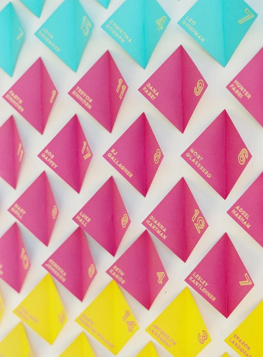A variety of floral silhouettes in an array of fresh, pop colors for each guest to find their table.